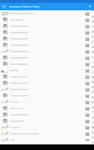 The free app "Dictionary of Musical Theory" is very friendly, it has a attractive and easy interface. The best choice for a pocket dictionary that is always at hand. From which you can learn a lot of fresh and interesting things, for example, that: